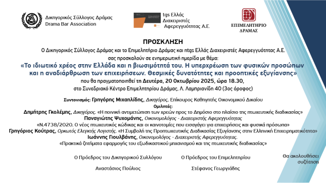 Ο Δικηγορικός Σύλλογος Δράμας, το Επιμελητήριο Δράμας και η tgs Ελλάς Διαχειριστές Αφερεγγυότητας Α.Ε.