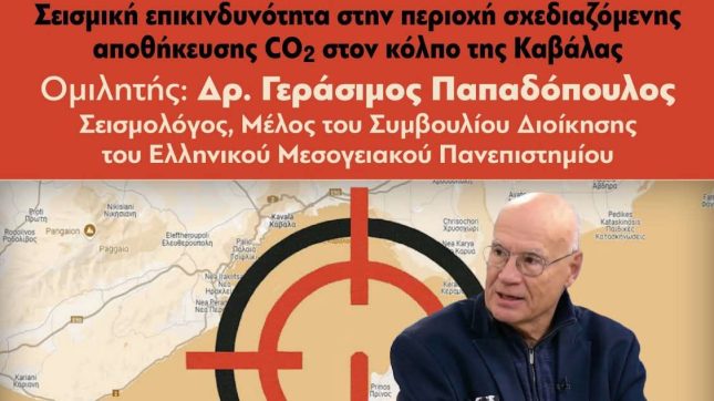 Η ΠΡΩΤΟΒΟΥΛΙΑ κατά ΑΠΟΘΗΚΕΥΣΗΣ Co2 στον ΠΡΙΝΟ κάλεσε το Σεισμολόγο Δρ. Γεράσιμο Παπαδόπουλου, την ίδια ώρα που ο Μπαρμπούνης της ENERGEAN αγνοεί το ΟΧΙ της Καβαλιώτικης κοινωνία