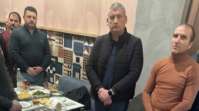 Ο πρόεδρος του Εμπορικού Συλλόγου Γιάννης Κελγιώργης και ο Αντιδήμαρχος Καβάλας Βασίλης Λεμονίδης στην πίτα των Κρεοπωλών Καβάλας